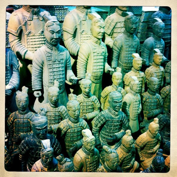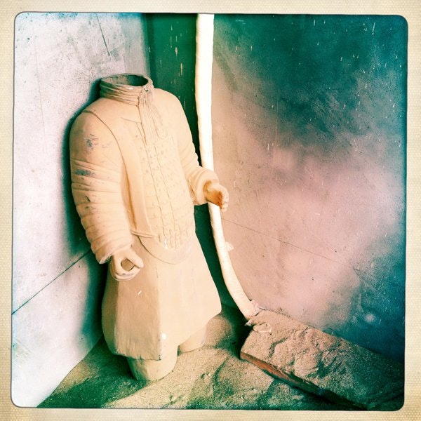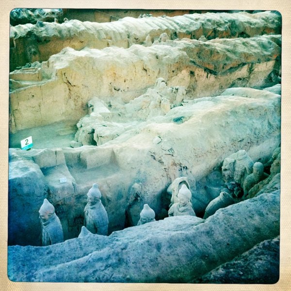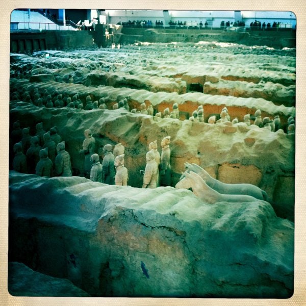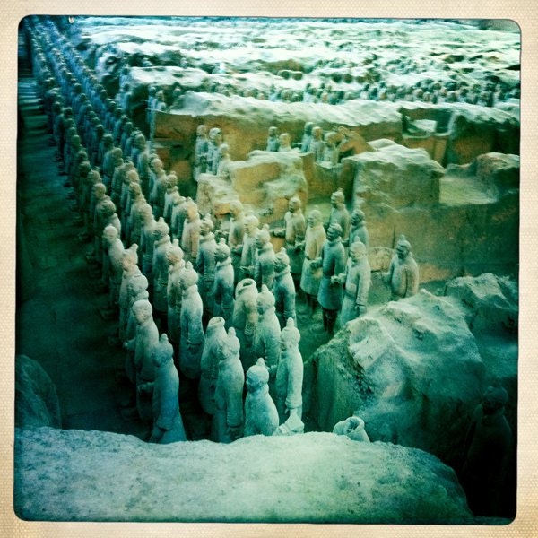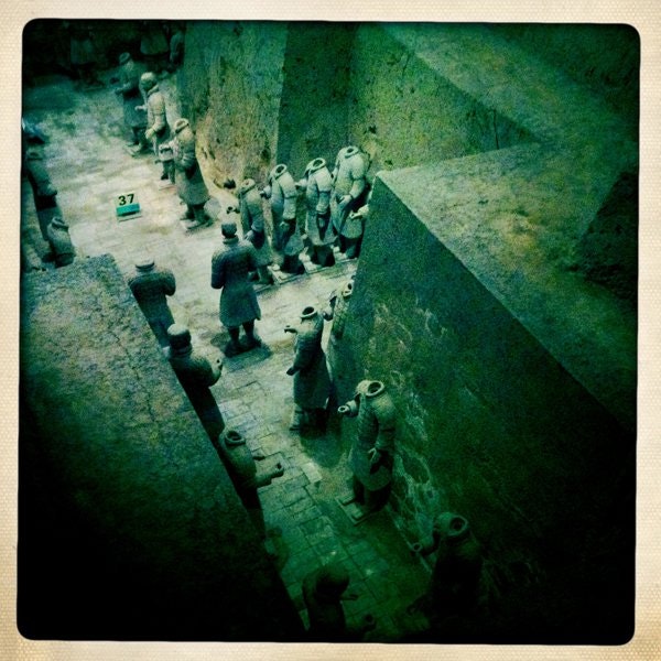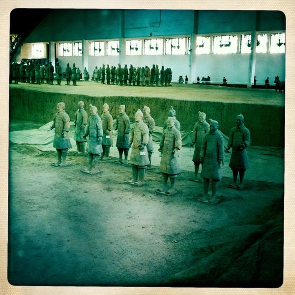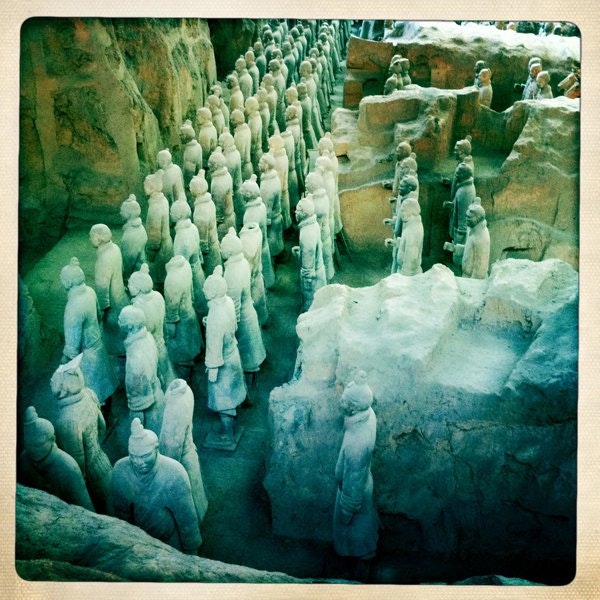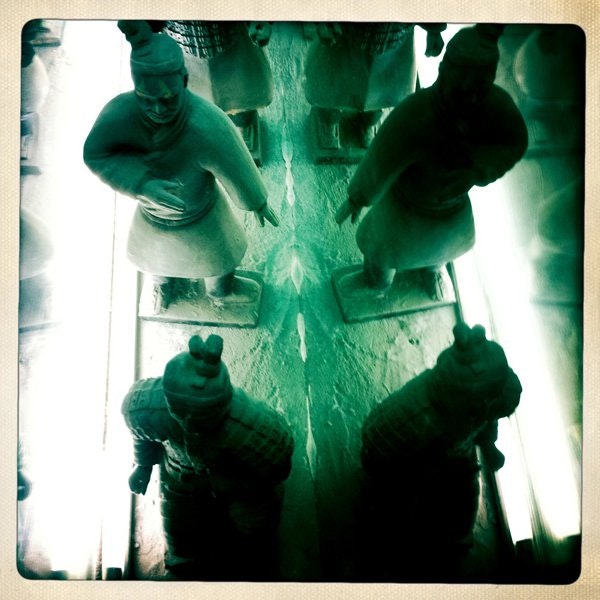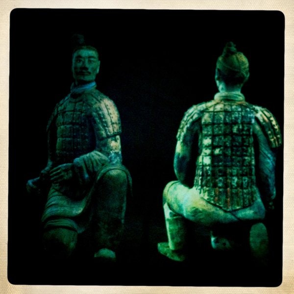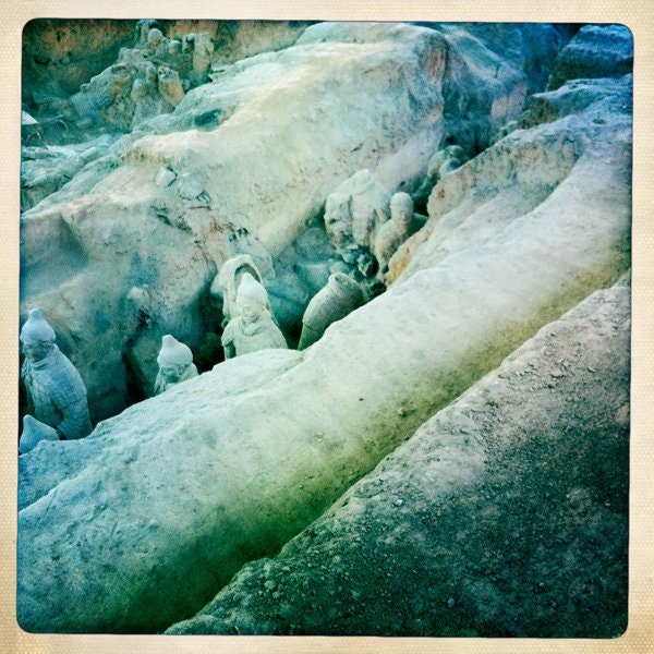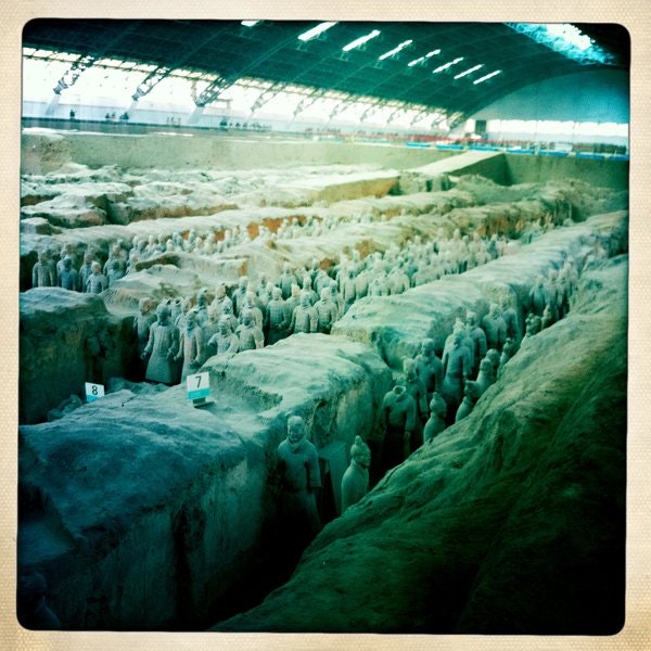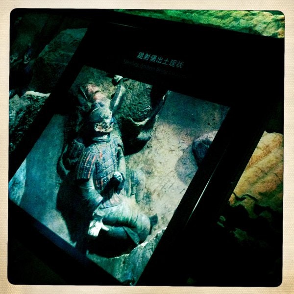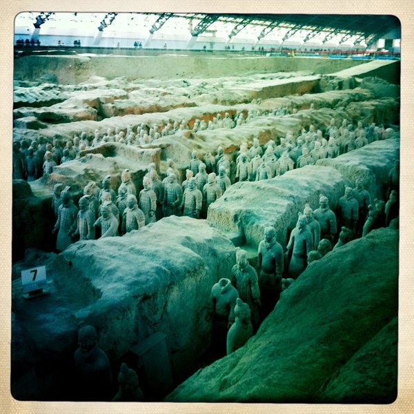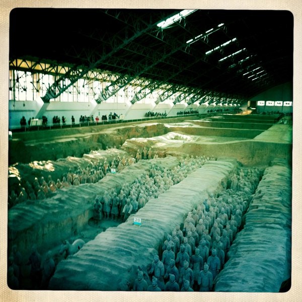 A short 17 hour train ride later and we were there. Cheryl, our resident producer quickly found us lodging with a man named Clarence who runs a suite of apartments aptly named "Warriors Apartments", as they are wall to wall Terracotta warriors ... everywhere, even under the beds. He also has his own theories of what happened with the Terracotta warriors, and his entire tour is in support of this, which was fine since we got to see stuff other people probably wouldn't have seen. Like a cave-dwelling village of old people. The actual warriors were pretty amazing considering how old they were and you can even purchase a life sized replica from the gift shop if you were so inclined.