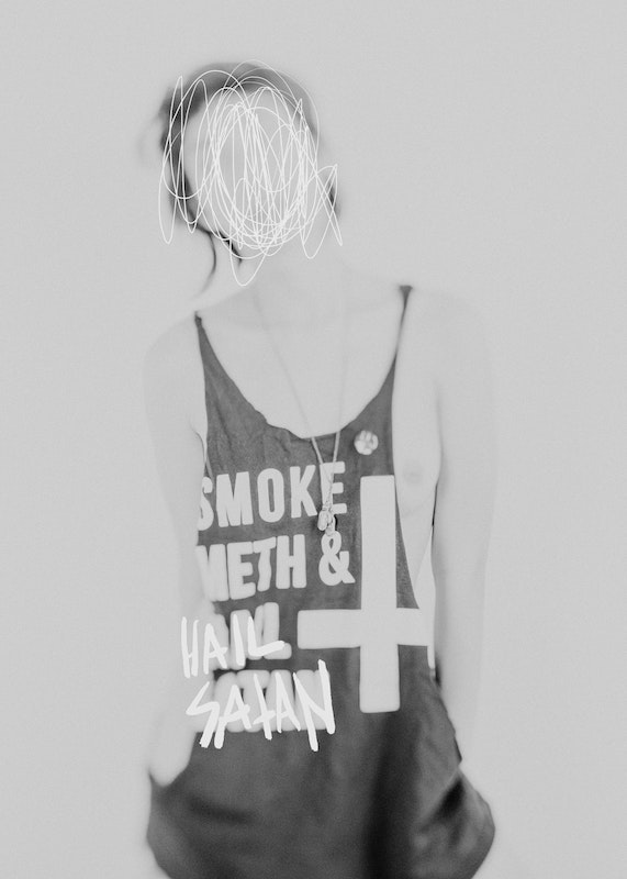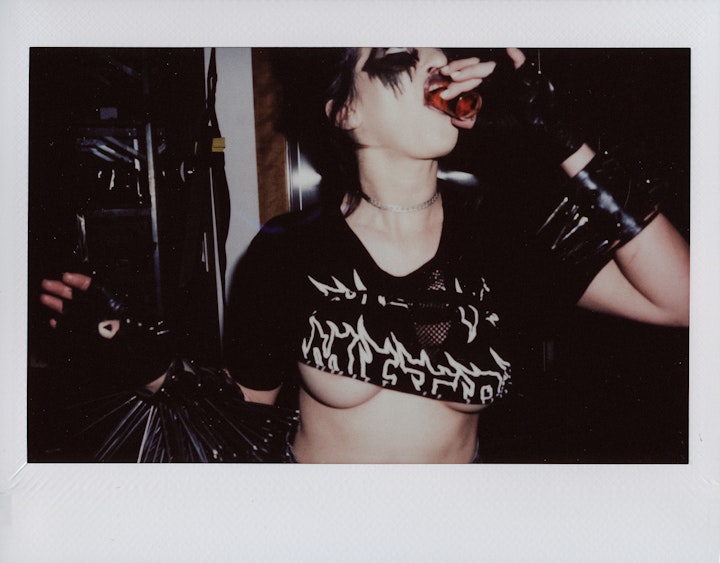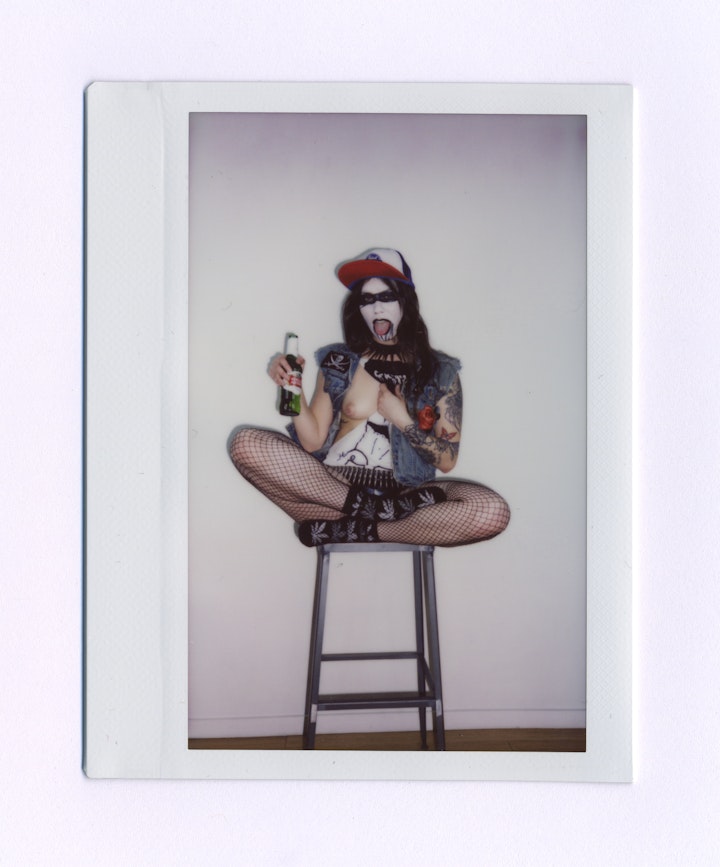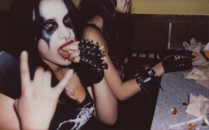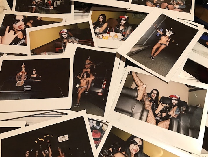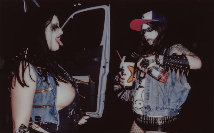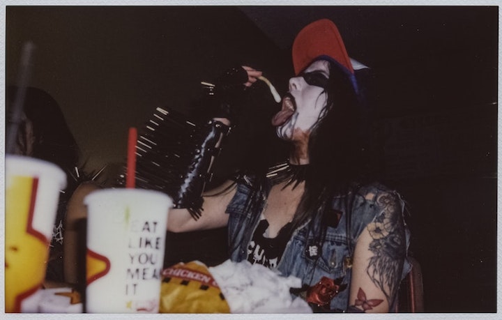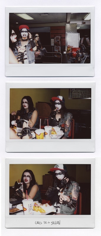 While you will normally find corpse-painted, sullen dudes frolicking through cold Norwegian forests in the world of Black Metal photography. I thought we could use more women who were also fans of Carl's Jr. As an homage to the true spirit of the genre, I've shot a good portion of this project using expired film and polaroid, shooting several formats and trying to keep things lofi. There was so much more than what remains here today, but again, even that feels Black metal as Fuck.
