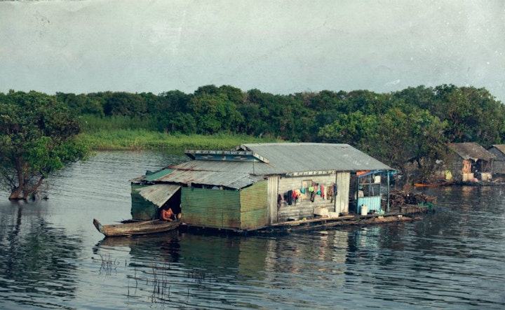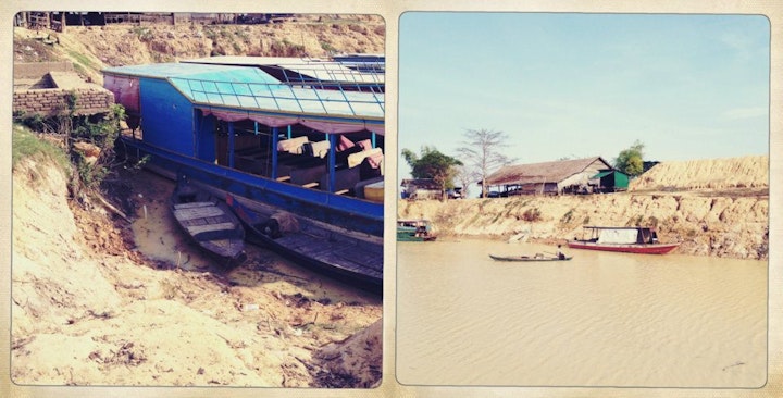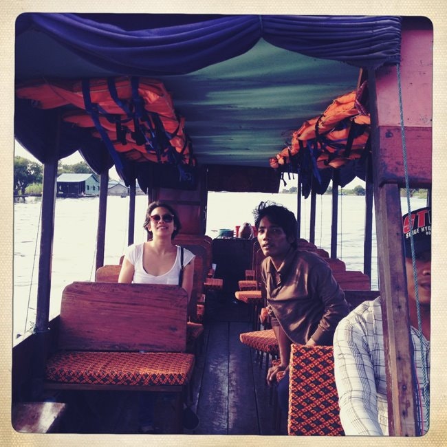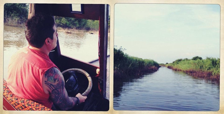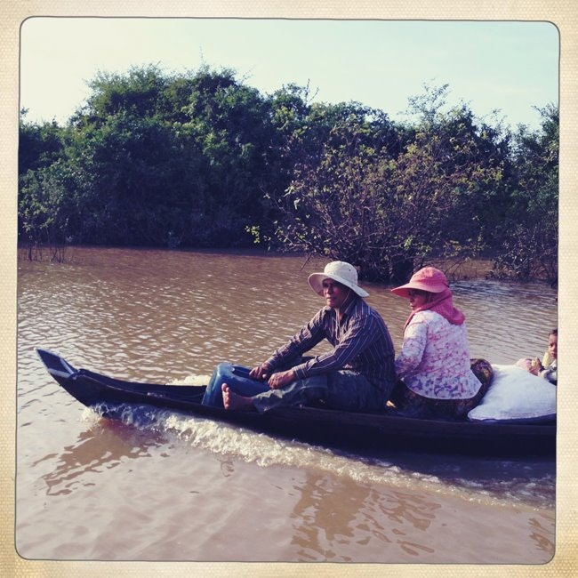 One of my favorite parts of our trip to Cambodia was taking a riverboat down the Tonle Sap river to see the floating villages. It's pretty simple. It's a bunch of houses that float. They've even got floating storefronts and a floating school, along the way we even picked up a small family who had too many things in their own boat, so by giving a few of them a lift, it eased the weight and allowed them to get home quicker. I generally like being on the water, but the sun setting on the way back made it even better. They even let me drive for a bit. I tried not to hit the locals.